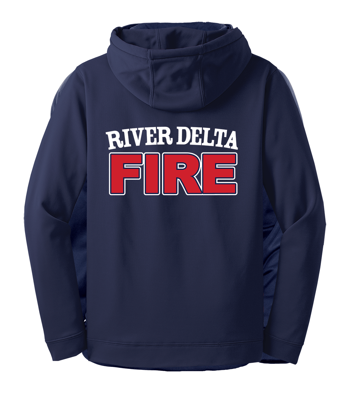 This hooded sweatshirt is made with performance wicking material. Pulls the perspiration away from your body and releases through the air.
