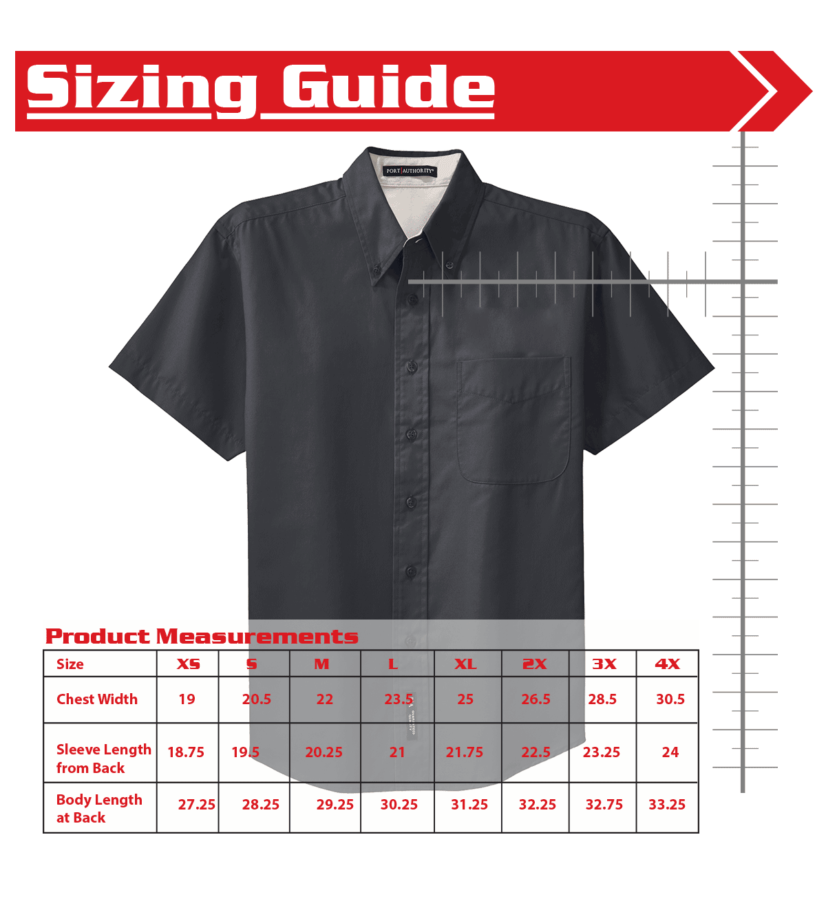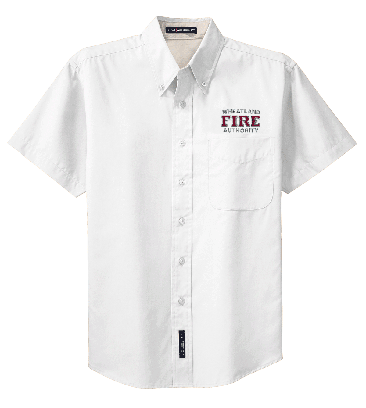 4.5-ounce, 55/45 cotton/poly Button-down collar Dyed-to-match buttons Left chest pocket Back box pleat Rounded adjustable cuffs