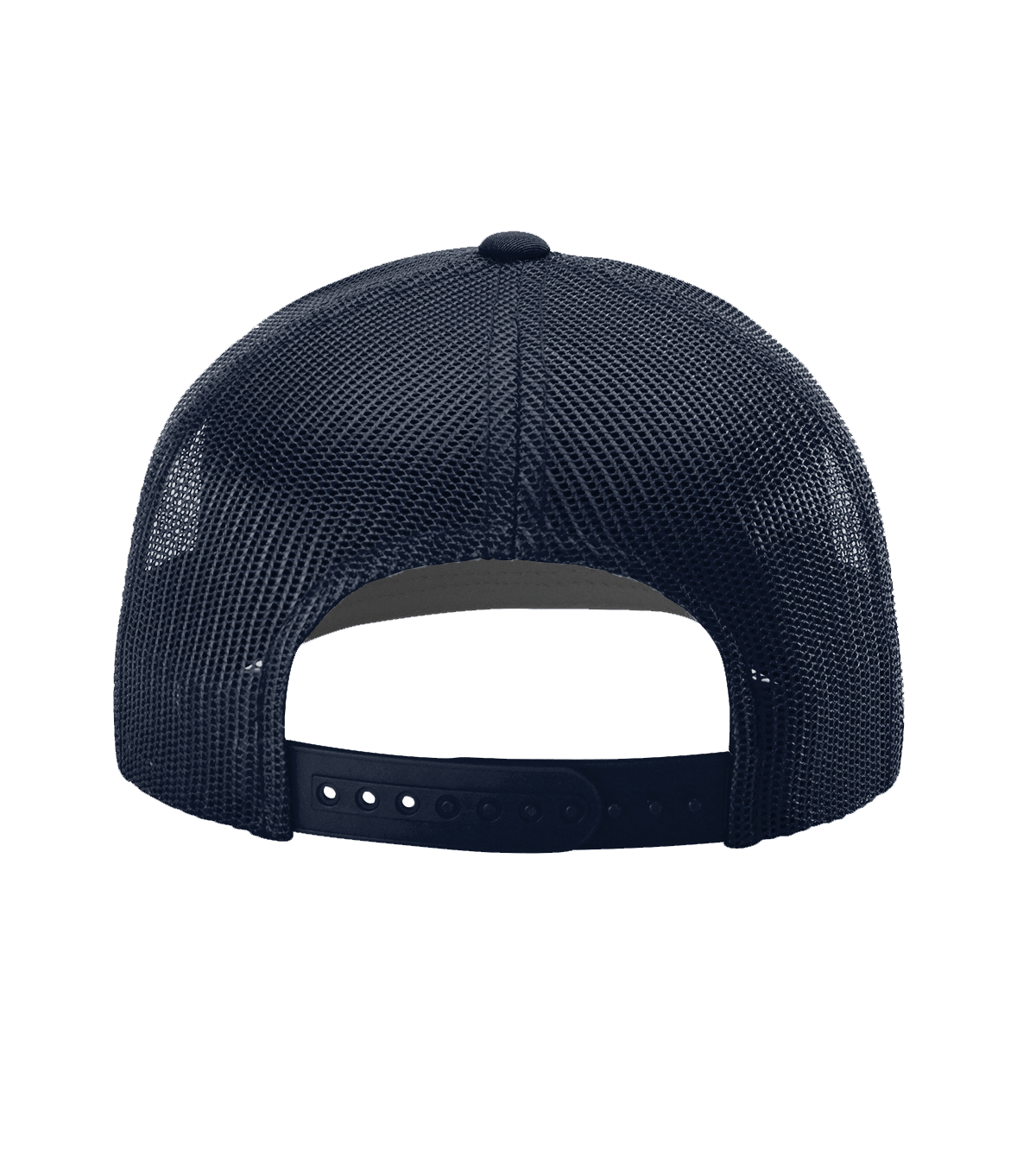Solid Panel Front with Mesh Back. This hat is one size fits most. The Back features a plastic snap closure.