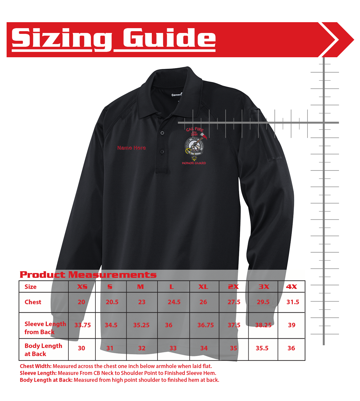 This is the official Honor Guard member polo. 6.6 Ounce Snag Proof Polyester. Tag-Free label. Raglan Sleeves. Reinforced Pen pockets on sleeve. Drop tail to say tucked in all day.