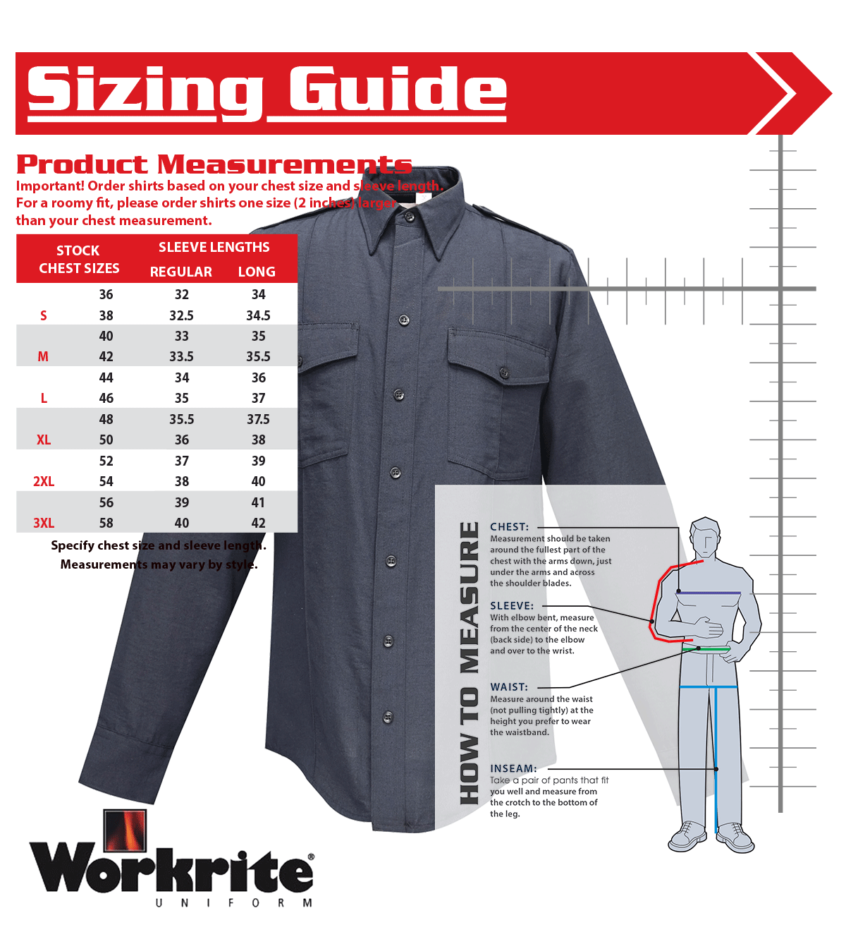The Workrite Classic Long Sleeve Fire Chief Shirt presents a professional look in any department. This fire-resistant shirt puts up a barrier against flames with 4.5 oz Nomex IIIA, helping to keep you safe in any situation. The long shirttail makes it easy to look polished and professional as it stays tucked in all shirt. Order by chest size and sleeve length.