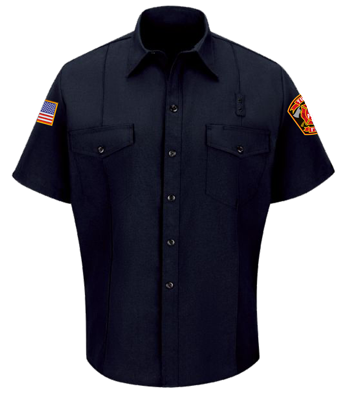 If adding patches is selected we use patches purchased from your Union. A Turlock Fire Shoulder patch will be placed on the Left shoulder and a gold border US Flag will be placed on the Rigtht shoulder. No need to take to your seamstress.